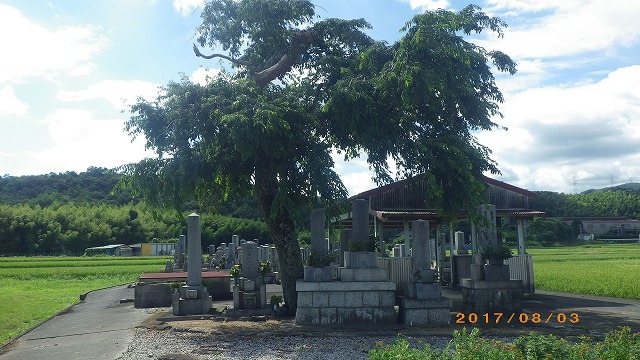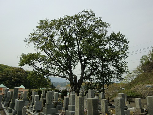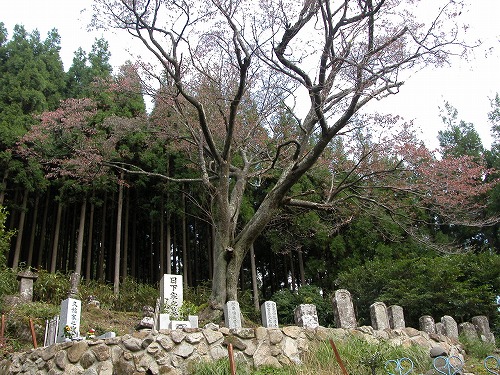 津市美杉町のヤマザクラ 最近、新しく建てられたお墓もあるが、幾分と古いお墓のようである。 |