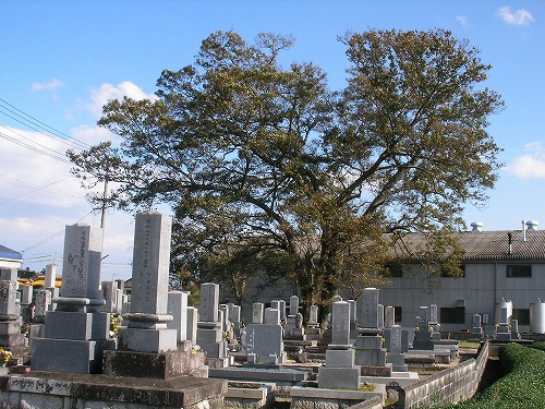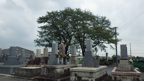 比較的古いお墓の割に樹木(ソメイヨシノ)は新しい。 どう考えてもサクラが後に植栽されたのであろう。 |