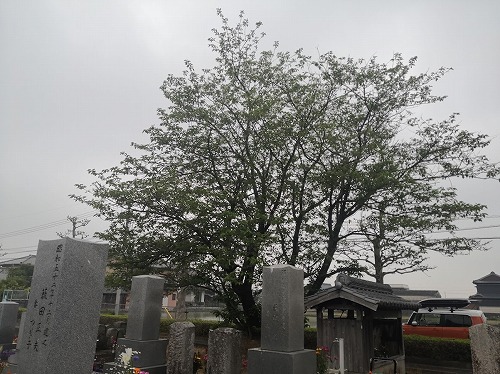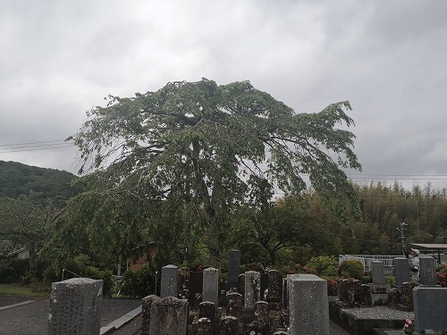志摩市の古いお墓にあるシダレザクラで、『山原の長寿桜』という愛称もある。 比較的遅くまで土葬が行われていた墓地でもあり、このシダレサクラは土葬が行われなくなった影響を受けているかも知れない。 |