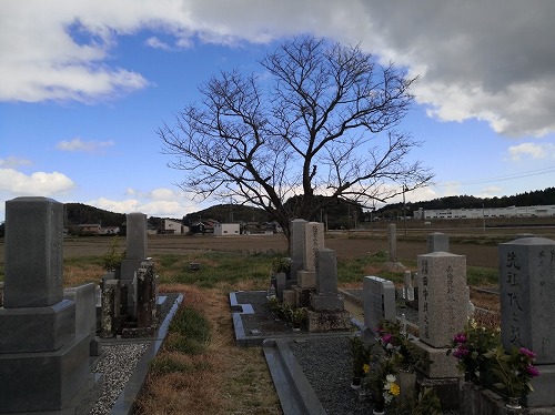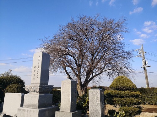 あ墓も新しく樹木も新しい。 それでもソメイヨシノは後に植えられたものだろう。 |