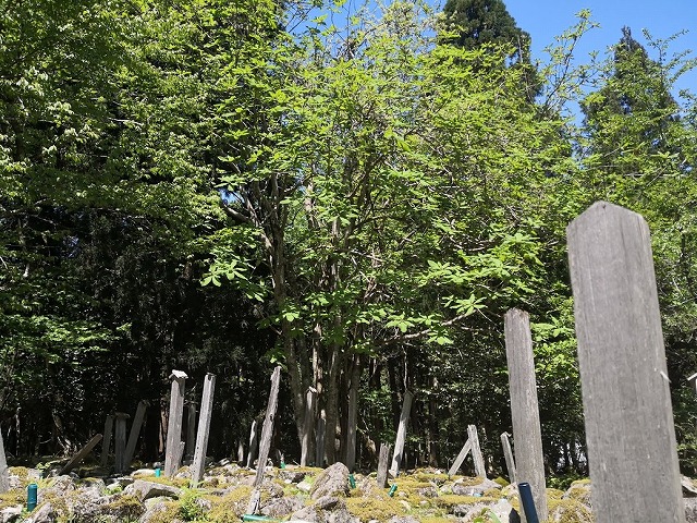 墓標が石ではなく、木標であった。
