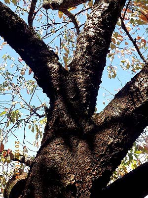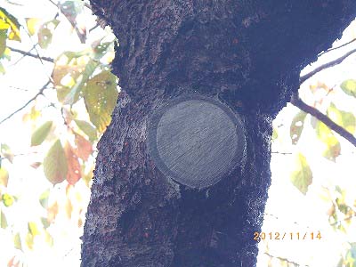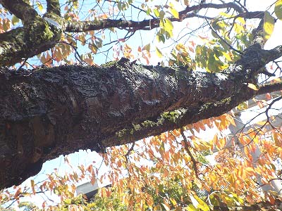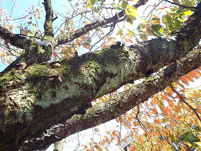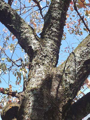 さて、このサクラの一部に枝枯れが認められた。 それを気にされた宮司さんからの相談でした。