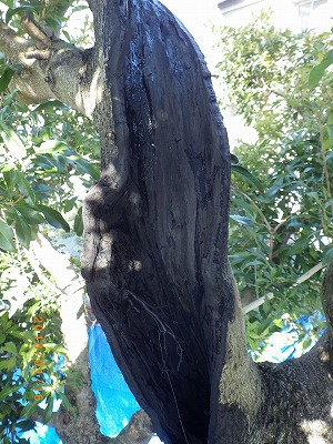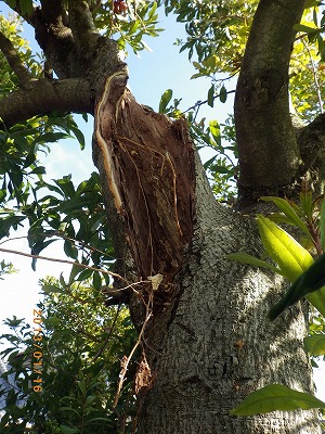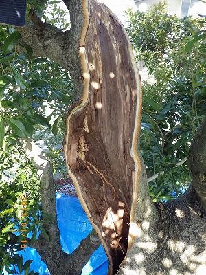 『元気にして!』・・・・という相談内容。 しかし、樹勢が弱っているわけではない。 結局のところ、腐りが進行し、樹皮が空洞化しているだけ。