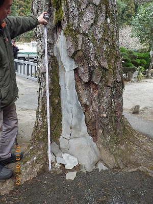 幹にはセメントが詰められ・・・・なんとその周囲にも樹幹注入の痕跡がみられた。 そして注入痕がやたらとたくさんある。