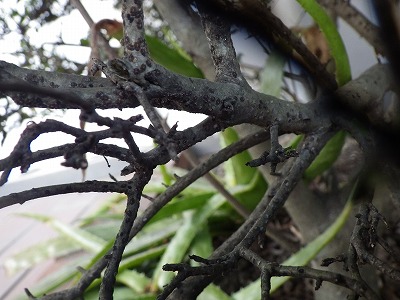 マシン油剤を数回に散布して対応した。 今現在、(平成25年6月)このコナジラミの個体数は、かなり減っている様子です。