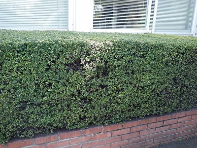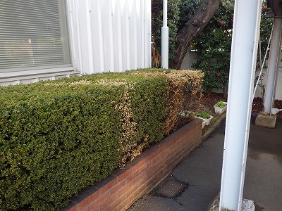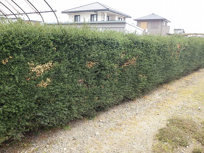 ■ キンメツゲの部分刈れ → 全体枯れ。 |