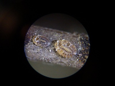 カイガラムシのように張り付いています。 最初は、カイガラムシかと思いましたが、コナジラミのようです。