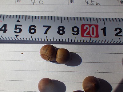 直ぐにシイノ実を発見。 スダジイではなく、ツブラジイのようです。