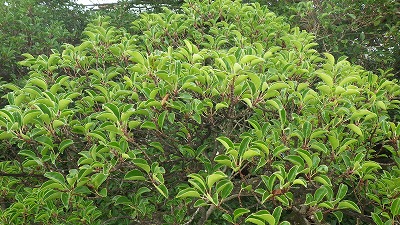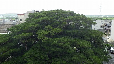 クロガネモチ 樹高15m 葉張り 24m 幹周囲 3.44m。 まるで モンキーポッドのような樹形だ!