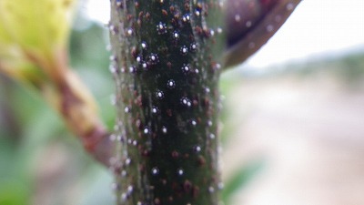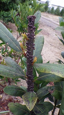 ルビーロウムシの大量発生。 樹冠最先端部には、ルビーロウムシがびっしり。