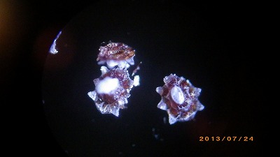 すこし解り難いので、別の写真で説明します。 左上の写真が、ルビーロウムシの雌成虫になります。