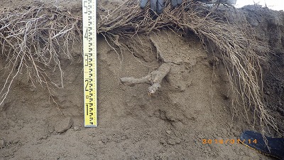 2016年1月 土壌改良作業の実施。 それなりの太さの根が枯れている事が解る。 |