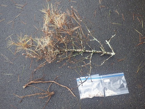しかし、昨年、すでに衰弱していたと思われる枝からの、マツノザイセンチュウの密度は、『0.7頭/g』であった。