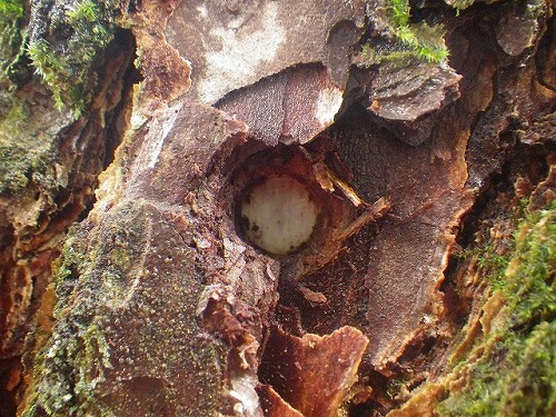 葉が残っているので完全に枯れたのは昨年だと考えられるが、それ以前にすでに衰弱が始まっていたと思われる部分。つまり、昨年の時点で完全に枯れていたわけではない。 |